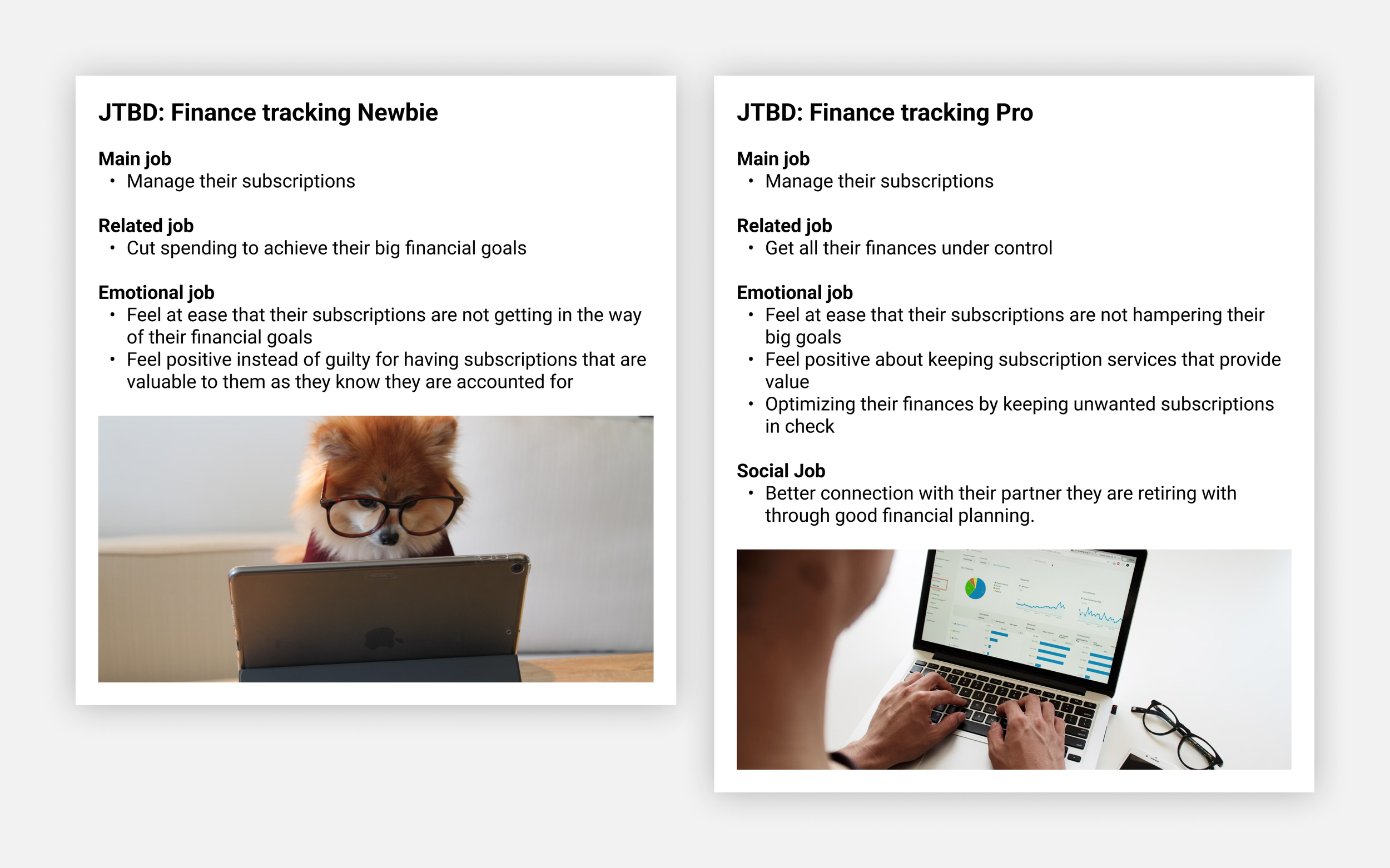 Using these insights, I drafted some initial jobs to be done that inform the design phase of the project